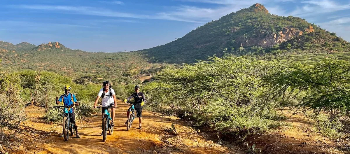 The final stage of your safari adventure takes you on an exhilarating e-bike journey across the conservancies west and eventually north of the Samburu Reserve. Between towering rock kopjes justting from the sea of Acacias, we will look for Elephants, Gerenuk and if we are very lucky, Lesser Kudu. You’ll traverse a breathtaking landscapes by e-bike, covering ground where very few tourists go. The bikes offer a mode of travel with a unique perspective on the area’s people and culture. Its more easy to connect to people when on a bike and smiles and stories are more frequent than when boxed up in a vehicle.